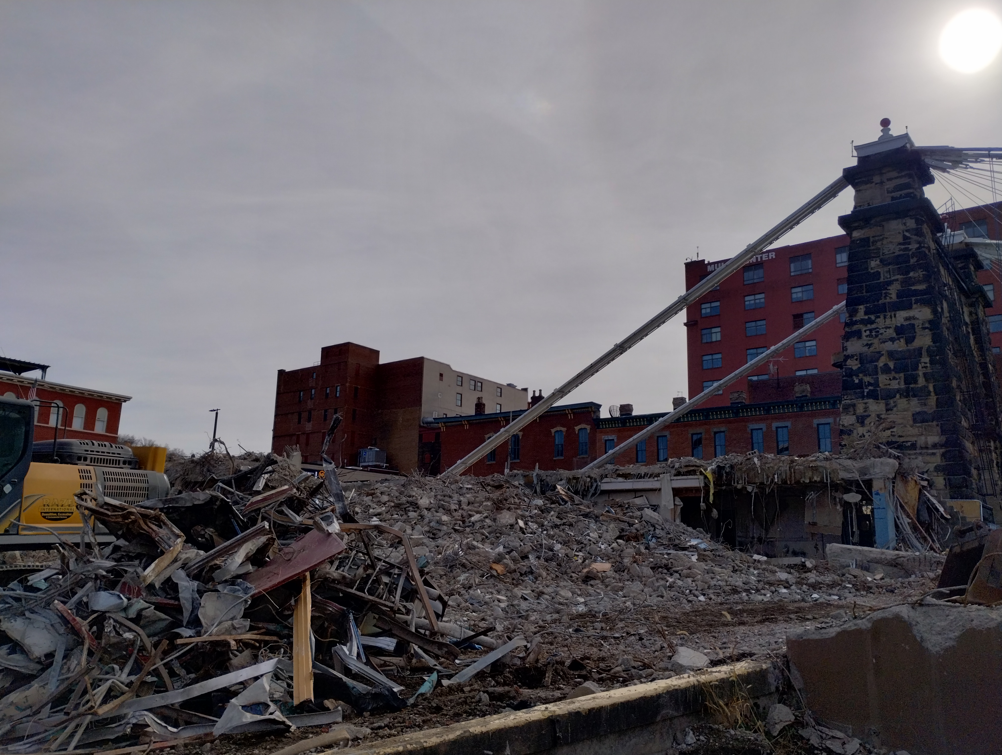 Desmone Architects were hired to demolish the former Wheeling Inn, a five-story building in Wheeling, West Virginia. The hotel was located next to the Wheeling Suspension Bridge, which was constructed in 1849 and is the first long-span wire-cable suspension bridge to be built in the United States. The bridge is known as the finest example of pre-Civil War engineering and is considered one of the world’s most significant and historic bridges. Desmone Architects were concerned about the stability of the bridge and retained GeoSonics/Vibra-Tech to develop a vibration limit for the bridge and its ancillary components. A thorough review of the bridge’s structural drawings, inspection reports, geotechnical reports, demolition plans as well as the proposed demolition methods and equipment were reviewed before developing a vibration criterion for the historic bridge. This vibration monitoring plan predicted vibration levels from the construction equipment and recommended monitoring locations during the planned demolition activity. Once the vibration monitoring plan was developed, GeoSonics/Vibra-Tech installed Re:mote Seismic Monitoring stations at locations indicated in the monitoring plan. Alerts were provided to project personnel when vibration readings reached or exceeded a predetermined warning level. With a precision-based demolition plan, the hotel was demolished without damage to the historic bridge.